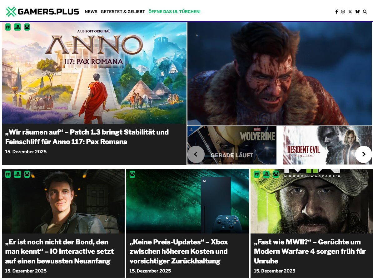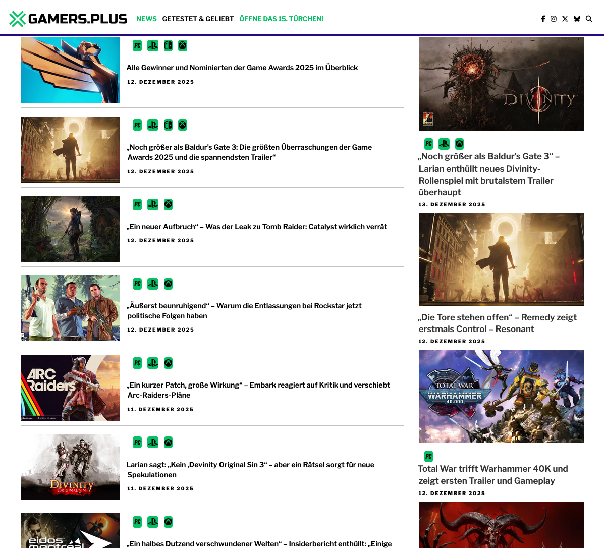 Sie bietet Informationen zu allen Spielen, darunter Neuigkeiten, Rezensionen und Ankündigungen. Gamers.plus deckt eine Vielzahl von Themen ab, darunter Spieleveröffentlichungen, Events und Awards, und bietet den Nutzern die Möglichkeit sich über verschiedene Aspekte der Gaming-Welt zu informieren und auszutauschen.